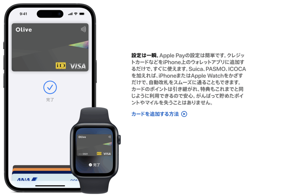 Apple Payは、iPhoneやApple Watchに標準搭載されている「デジタル財布」のような存在。